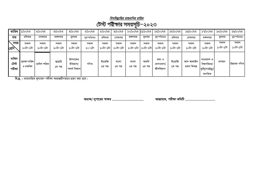 Dakhil Test Routine 2023